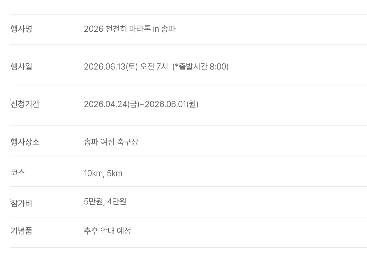 기록보다 동행의 가치를 담아,누구나 안전하고 편안하게 달릴 수 있는 마라톤 행사입니다.